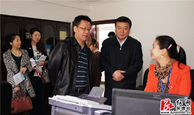 中南传媒集团董事、红网董事长、总经理、总编辑舒斌,保靖县委书记宋清宏,保靖县委常委、宣传部长、统战部长龚迎春视察红网保靖站。 张承印 摄