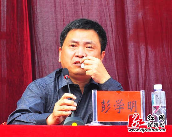 彭学明在保靖民族中学励志报告会上感动落泪。 摄影 彭司进