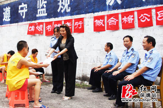 “读《娘》书、践孝行”公民道德建设主题活动启动,保靖县委宣传部专程向在押人员赠送全本《娘》。 摄影 张承印