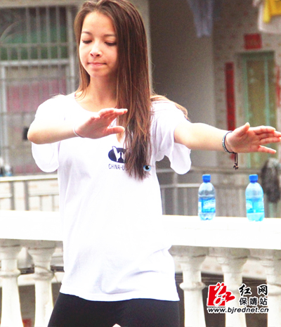 Malia兴奋地通过翻译告诉笔者,她非常珍惜此次中国之行,非常感谢保靖民族中学的安排,她非常喜欢东方文化,回国后将推广道家养生太极拳,让更多美国人体验中国太极拳的神奇。