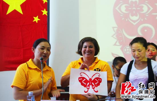 红网保靖站7月24日讯(特约通讯员 彭元伟 通讯员 彭恩武 陈官芝) 剪纸是中国传统民间艺术形式之一,其历史可追溯到公元六世纪。7月22日,参加保靖第六届中美“好学生·闯世界”英语夏令营的300余名营员在县民族中学参加剪纸的学习。