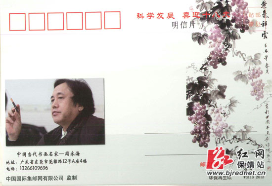红网保靖站8月18日讯(记者 易果)近日,保靖籍著名书画家周永海的肖像、部分国画作品分别被制作成邮票、电话卡、明信片、纪念币,入编《中国当代书画名家周永海——科学发展,再创辉煌》纪念珍藏邮册,并全国发行。
