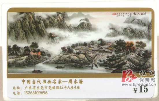 中国邮政邮票和中国电信电话卡素有“国家名片”之称,周永海共有6幅作品登上这次主题邮票,每枚面值为100分、80分,以及15分不等。电话卡三张,一张面值为100元,两张面值为15元。