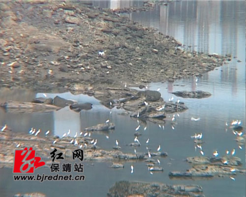 红网保靖站9月12日讯(记者:易果)一群群白鹭停驻酉水河两岸,它们时而在河滩上低空盘旋、相互嬉戏;时而栖落在浅水中漫步觅食……雪白的身影,悠闲地飞翔,保靖县碗米坡水电站附近,一群白鹭和波光粼粼的水面,构成了一幅白鹭戏水的画面。