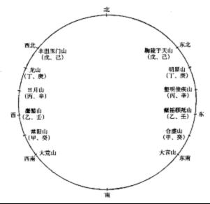 西北、西、西南各有两座日入之山,而《大荒东经》东南日出之山有四座、东方日出之山有两座,东北则没有,而在东南隅后两座山旁又有幽之国。幽常与北相连,故知东南方的后两座日出之山,应在大荒东北,错置于东南隅下。