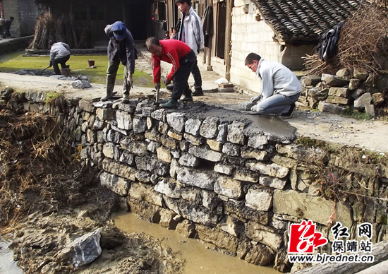村民正在修垮了的村间小路