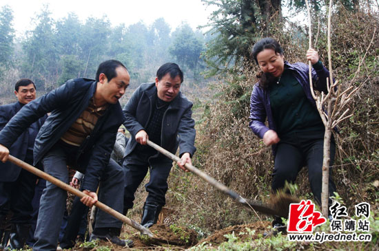 随后,郭建群一行来到吕洞村,参与了植树活动。郭建群与杨志慧一起栽下了一棵棵樱桃树。郭建群指出,一定要用自己的实际行动绿化家园,打造绿色村庄,为以后的旅游发展作好准备。