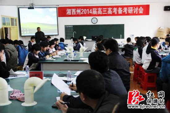 红网保靖站3月24日讯(通讯员 田亚林)3月21日,湘西州教科院专家与各县市高三教师代表们齐聚保靖县民族中学,举行湘西州2014年高考备考研讨会。大家共同探讨高考备考工作,为6月份的高考蓄力冲刺。