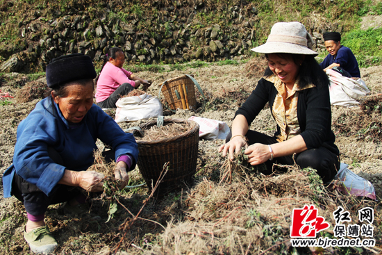红网保靖站3月27日讯(通讯员 唐文贵)3月25日,保靖县水田河镇梁家村村民梁大合家正请人忙着收丹参。 丹参是一种名贵中药材,每斤价格在百元以上。去年,梁大合租用了10亩地,专门种植丹参,喜获丰收。据她接受,预计今年的药材收入将近10万元。