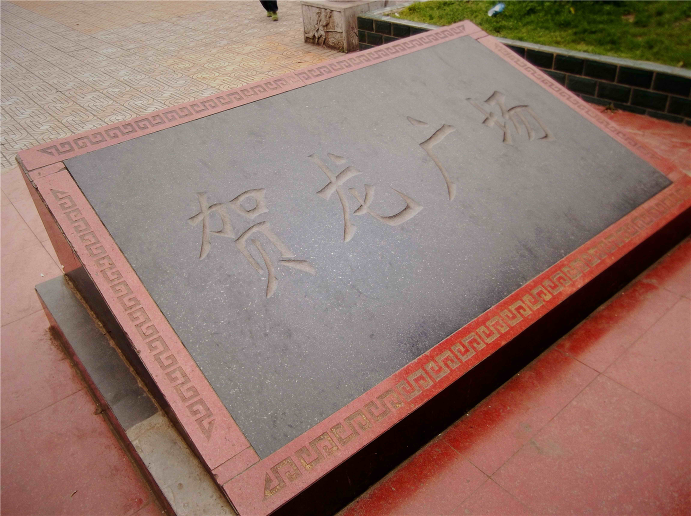 贺龙广场的字碑 石远定 摄