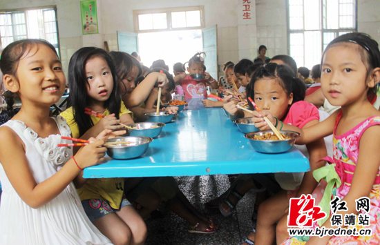 红网保靖站9月3日讯(特约通讯员 俞采华 通讯员 陈亚平)9月1日是秋季开学的第一天,保靖县清水坪学校的留守娃开心地吃营养午餐。近年来,该县着力抓好农村义务教育学生营养改善计划工作,加强食堂从业人员配备、培训和管理,向每名农村贫困地区义务教育学生提供营养餐补贴,惠及3万多山区留守儿童人,实现了农村贫困地区义务教育学生营养餐全覆盖。