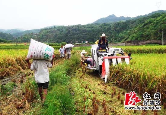 红网保靖站9月4日讯(通讯员 王雅蔚)“这下放心了!今年三个小孩都出去打工了,我正操心这3亩谷子怎么收回来。今天收割机进田不到1个小时就搞完了,我只要把谷袋搬回去就成了”,大妥村民张世良一脸兴奋的告诉笔者。