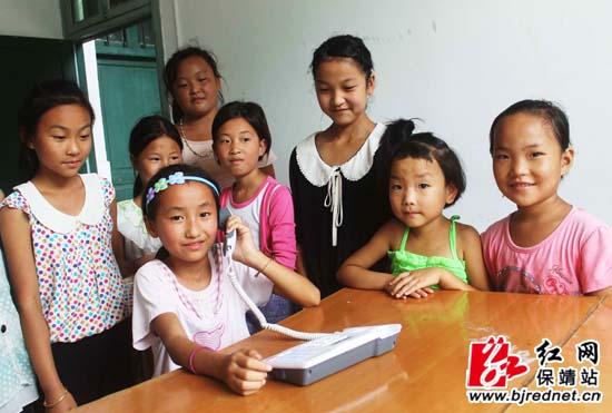 红网保靖站9月10日讯(特约通讯员 俞采华 通讯员 陈亚平)9月6日,保靖县马王小学留守儿童在开心地跟在外地的父母通话。中秋节来临之际,该校为在校寄宿的山区留守儿童开设亲情电话和网络视频,让他们向远方务工的父母传达节日的问候,并汇报学习生活情况。