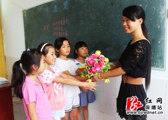 红网保靖站9月11日讯(特约通讯员 俞采华)9月9日,保靖县清水坪镇黄连小学的学生给老师送花,祝老师节日快乐。在教师节来临之际,该校开展“感恩教师,难忘师情”为主题的教育活动,倡导学生为老师“献一束花”、“唱一首歌”、“送一句祝福”、“做一张贺卡”等多种形式,为辛勤培育他们的老师送上节日的祝福。