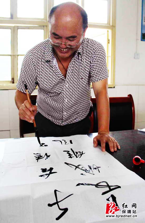 本次活动,该学区校长向仁春,不仅是组织者,也是积极的参与者,在书法活动中,他脱颖而出,成为了8名参赛者中的佼佼者。