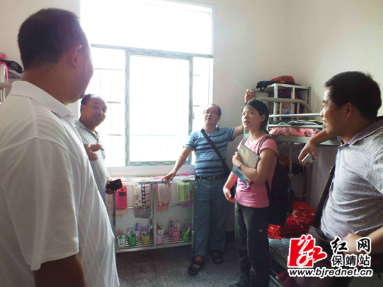 蔡家莲女士在阳朝中心完小检查学生寝室的项目建设