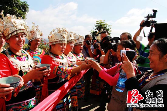 红网保靖站9月23日讯(通讯员 蒋国全)9月20日,保靖县老年摄影家协会90余名会员,来到了麻阳县谭家寨楠木桥村参加“2014年楠木桥‘长寿新苗寨、醉美楠木桥’葡萄采摘节”摄影实践活动。他们用镜头拍摄葡萄园的葡萄、苗家栏门酒、打糍粑、杀年猪、文艺表演和亲手采摘葡萄、品尝葡萄美味、拍摄风光景色。