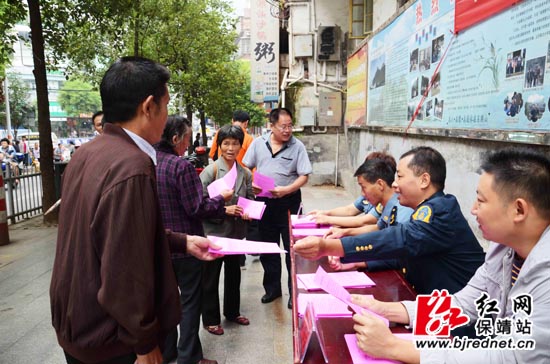 保靖县城客办工作人员向群众发放公交出行相关资料的情形