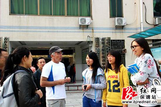 保靖民族中学外籍教师与张家界外语学院的学生在进行交流