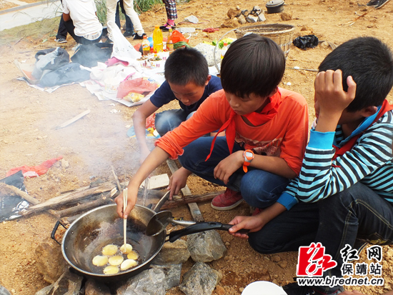 红网保靖站10月22日讯(通讯员 徐春春)为了让学生亲近自然,开阔视野,培养他们的动手能力和协作精神,保靖县阳朝中心完小把课堂搬到野外。10月20日,该校组织三到六年级学生到白溪关大桥进行了户外野炊实践活动。