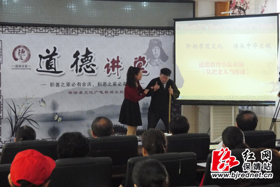 红网保靖站10月26日讯(通讯员 刘谨梅)“爹,哥哥们不养你我来养,你莫伤心了!”10月21日晚上8点多钟,湘西新闻频道“道德讲堂”电视专栏正在播出保靖县文广新局“道德讲堂”感人小品《莫把老人当排球》。