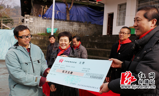 红网保靖站1月12日讯(通讯员 田亚君 谭明亮 龙敬)1月7日,湖南省保靖县傍海小学全体师生喜领到来自北京的爱心礼物。北京吴裕泰茶业股份有限公司千里迢迢来到苗山深处傍海村小开展捐资助学活动,为该校31名学生送来了5万元爱心款、200个新书包和一批爱心书籍,让苗山孩子感受到了寒冬里的温暖。