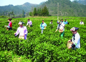 图为苗族姑娘正在茶园中采摘“保靖黄金茶”。