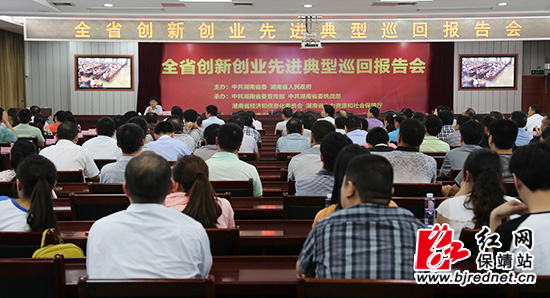 红网保靖站6月15日讯(记者 宿任人)6月13日,由湖南省人力资源社会保障厅副巡视员吕志纲带领的6名全省创新创业先进典型巡回报告团成员来到保靖,为在场人员讲述了他们创新创业的动情故事。保靖县委副书记、县长杨志慧、县人大常委会主任罗念生、县政协主席梁远新以及在家的常委领导出席会议,县委副书记向安生主持报告会。