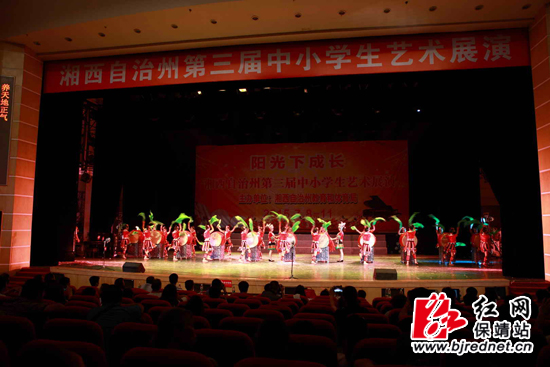 红网保靖站7月14日讯(通讯员 石先利 葛民彬)湘西州第三届中小学生艺术展演于2015年7月8-11日在湘西大剧院隆重举行。三年一次的中小学生文艺展演是对我州中小学生素质教育成果的检阅,今年的主题是“阳光下成长”。旨在艺术展演活动,反映中小学生热爱祖国、热爱家乡、奋发向上的精神风貌,展现多姿多彩的校园文化生活,培养学生健康的审美情趣和良好的艺术修养,让孩子们沐浴在党的阳光下茁壮成长。
