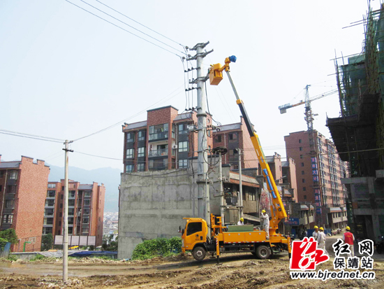 原来,7月4日,国网保靖县供电公司接到上级指示,县公路局要求,将城关变梅城Ⅰ线10千伏线路上钉子厂400伏台区内的D20号杆拆除,同时将多出的400伏导线向原D20号杆的两端D19号电杆和D21号电杆收紧,以保障保靖县市政工程的施工机械和人员安全。当天,电力施工人员及时赶到现场进行勘察。