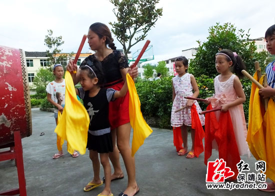 红网保靖站7月20日讯(特约通讯员 俞采华 通讯员 吴大清)7月16日,保靖县清水坪镇文体广电服务站的工作人员向留守儿童传授苗鼓表演技艺。进入暑假以来,该镇文体广电服务站组织留守儿童在镇文体艺术中心,学习非物质文化遗产“苗鼓、摆手舞”等表演技艺,既激发了孩子们对“非遗”的兴趣,也丰富了他们的暑期生活。