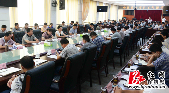保靖县委副书记、县长杨志慧,县委常委、常务副县长周胜益,县委常委、副县长阳文魁,副县长胡勤、王万双、伍刚,县政府助理调研员王仕孝,副县级干部彭腾翔、彭利顺、田廷斌、贾光荣等出席会议。清水坪镇、清水乡、县发改局、县国土资源局等43个涉及项目或与项目工作有关单位参加会议,湖南云鼎置业有限公司、湖南轩华锌业有限公司等32家项目施工单位列席会议。县委常委、常务副县长周胜益主持会议,县委常委、副县长阳文魁通报重大项目建设半年督查情况,县公路局、保靖国际大酒店城市综合体建设项目施工单位两家单位负责人作了典型发言,清水乡人民政府(金茂花园房地产开发建设项目责任单位)、县民政局(县殡仪馆及公墓山建设项目责任单位)作表态发言,县委副书记、县长杨志慧作重要讲话。