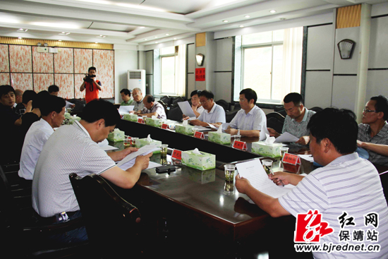 省党史联络组湘西片组向世林一行在保靖县四大家常务会议室现场听取汇报 田爱琴 摄