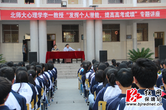 红网保靖站10月26日讯(通讯员 彭明星)10月22日,保靖民族中学邀请了北京师范大学心理学博士、北京世纪蓝梦心理学研究中心主任研究员、心理咨询专家李一教授,在学校科技楼广场为全体高三学生带来一场主题为“发挥个人潜能,提高高考成绩”的高考心理调适专题讲座。