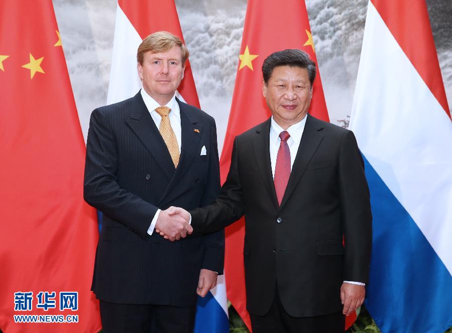 威廉-亚历山大国王表示,荷兰与中国保持着传统友好关系。中国是荷兰第二次世界大战时期在亚洲的重要盟友。两国虽然国情不同,但新形势下可以在农业、畜牧业、水利、金融、法治等广泛领域开展互利合作,在联合国维和行动、可持续发展、应对气候变化等重大国际问题上密切交流协调。中方发起的“一带一路”和亚洲基础设施投资银行倡议具有重要意义,荷方愿积极参与相关合作,并支持“一带一路”规划与欧洲投资计划对接合作。荷方赞同加强教育、体育等领域两国人文交流,感谢中方同意与荷兰合作开展大熊猫保护研究。荷方支持加强欧盟同中国关系,将在轮任欧盟主席期间积极推动自由贸易和人员往来。