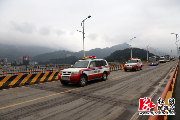 “湘防--2015”全省人防机动指挥车队途径保靖酉水二桥进行环城拉练