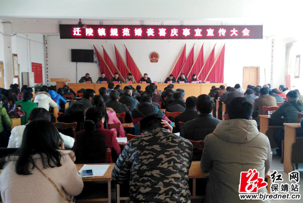 近段时间来,尽管三令五申,但滥办酒席之风似有抬头。为确保婚丧喜庆事宜新规落实,2月26日,迁陵镇召开全体干部和村(社区)干部大会,进一步向干部职工、村干部宣传婚丧喜庆事宜,要求广大党员干部职工带头厉行勤俭节约,倡议村民代表和党员带头拒绝“无事酒”,抵制“人情风”。