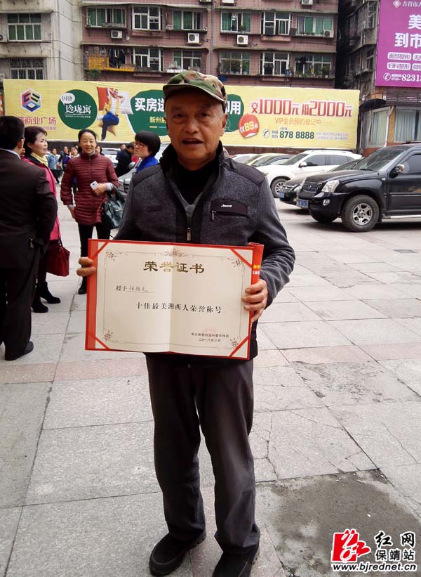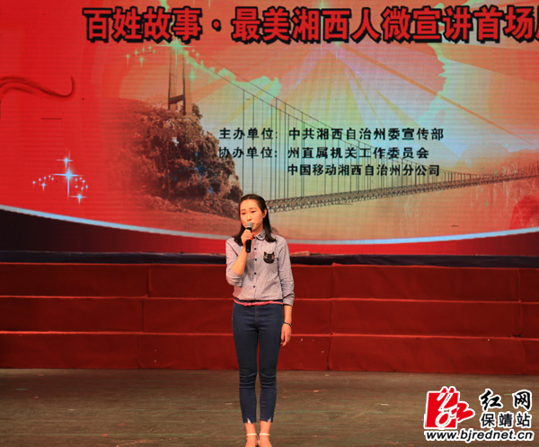 活动过程中,舒洲老师用抑扬顿挫的语言讲述了复兴镇山河村退休7年的张胜文老师,一直自愿为村里九个孩子上课、煮饭(营养餐)的动人故事,并荣获此次展演二等奖。张老师动人的事迹感染了所有的观众,深深打动了评委,张胜文老师荣获了“十佳最美湘西人荣誉称号”。