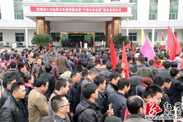 红网保靖站3月14日讯(记者 彭伟 张承印 通讯员 田婧 彭礼)3月11日,保靖县3.12全民义务植树暨实施“千里生态走廊”建设活动启动。几百名干部职工会聚在县“四大家”办公楼前参加活动启动仪式。县委副书记、县长杨志慧,县委副书记向安生,县人大常委会主任罗念生,县委常委、组织部长、统战部长符家盛等在家的县领导参加了植树活动。