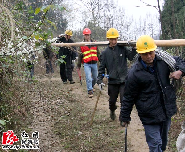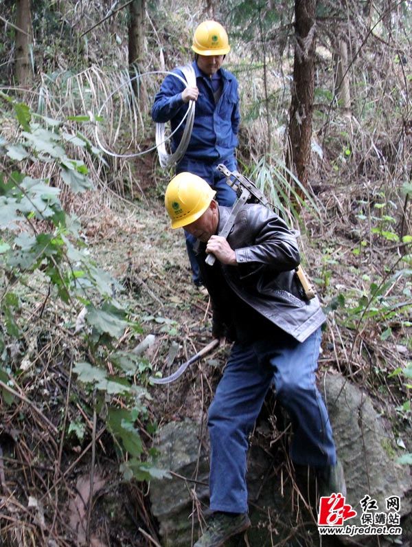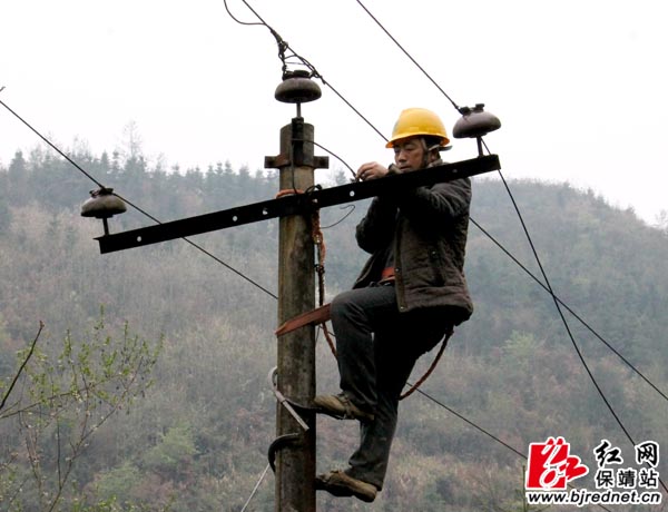 红网保靖站3月15日讯(通讯员 俞采华 曹彪)3月14日,国网保靖供电公司的电力服务队正在清水坪镇抢修电力设施。