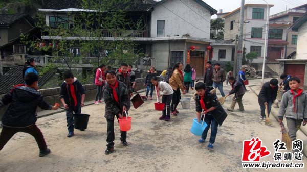 3月14日下午,保靖清水小学四至六年级学生来到复兴镇河边村进行义务卫生大扫除活动。