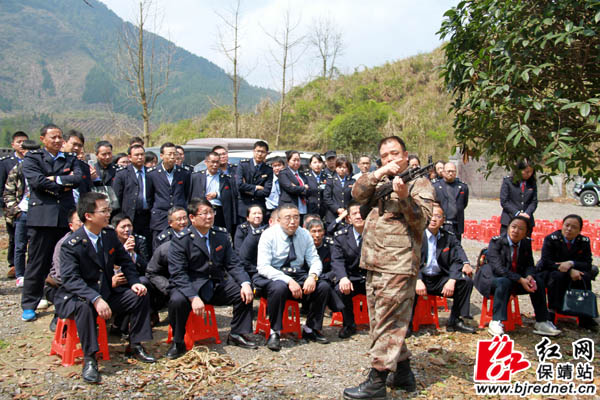 该县迁陵镇武装部部长罗时东向全体地税干部讲述了当前21世纪国际形势和国防在和平年代对国家安全的重要性,鼓励大家加强自身学习,提高国防素质,积极参加现代化国防建设,为国防建设奉献自己的力量。随后他带领大家到打靶现场,为大家详细讲解了枪支特点、射击要领、注意事项等。在