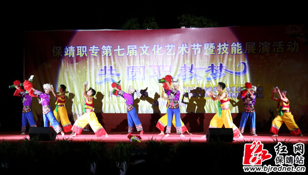 红网保靖站5月23日讯(通讯员 田亚君)近日,湖南省保靖职业中专学校第七届文化艺术节暨“共圆职教梦”技能展演活动浓情上演。县内16个生源学校校长、教师代表和该校1000多名师生现场观看。