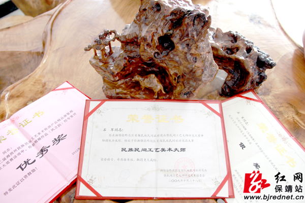 临走时,石军告诉笔者,他一直有一个梦想,就是等到儿子、女儿读完大学后,自己建立一个个人根雕艺术馆,把自己的精品根雕收藏在里面,让更多的人来了解根雕艺术,让更多的人来喜欢根雕,让这种珍贵的文化能够传承下去。