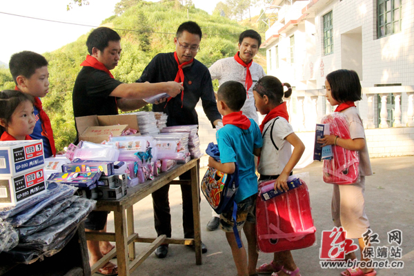 红网保靖站8月19日讯(通讯员 俞采华 陈亚平)8月18日,广东省中山市邦拓电器有限公司的爱心人士在保靖县马王小学给留守儿童发放爱心物资。当日,该公司与湘西宁可等多家企业,自发组织的爱心资助团来到马王小学开展爱心捐助活动,为学校20名贫困留守儿童送去水彩笔、文具盒、书包及学校办公桌等价值20000多元的爱心物资,帮助他们解决部分困难,改善留守儿童的学习条件,促进他们健康茁壮成长。