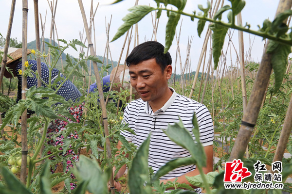 蔡玉坤在楠竹山蔬菜种植基地查看西红柿长势
