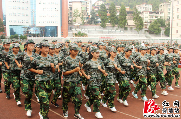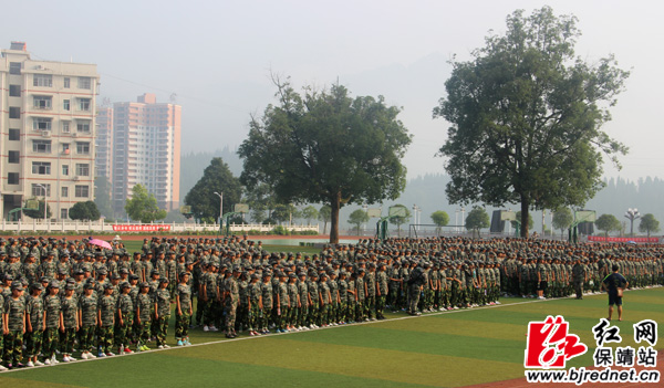 红网保靖站8月22日讯(通讯员 彭礼 彭明星)“一、二、一……”8月18日,保靖民族中学的运动场内,一队队身着绿色军装的“新兵”正头顶烈日喊着口号齐步前进,该校2016级高一新生军训正在进行。
