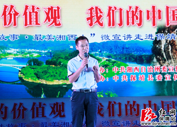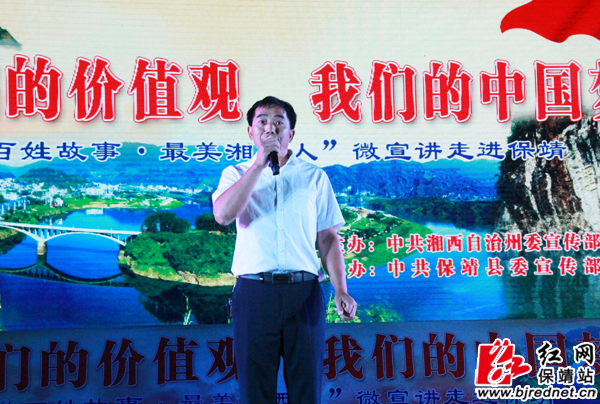 红网保靖站9月9日讯(记者 张坤 向松)9月8日,“我们的价值观·我们的中国梦”暨“百姓故事·最美湘西人”微宣讲巡回展演活动走进保靖。