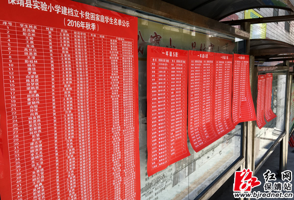 红网保靖站9月13日讯(记者 宿任人)“看!学生资助名单粘(帖)出来了,都是建档立卡贫困户。”8月30日,在保靖县阳朝学区仙仁小学内,报名的家长在建档立卡贫困家庭学生名单公示前围观。截止目前,保靖县所有学校已对本校符合条件的建档立卡贫困家庭学生名单进行公示,这是保靖教体局严格履行学生资助工作流程、落实学生资助全覆盖、全面推进全县教育帮扶工作的一个小小缩影。
