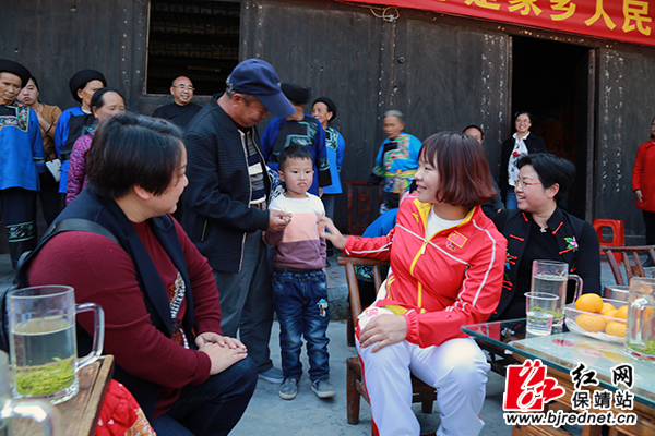 从11岁离开故乡后,向艳梅忙于训练,很少再回到家乡。很多老人都还记得向艳梅小时候的样子,她们亲切地拉着向艳梅的手,叙着家常。